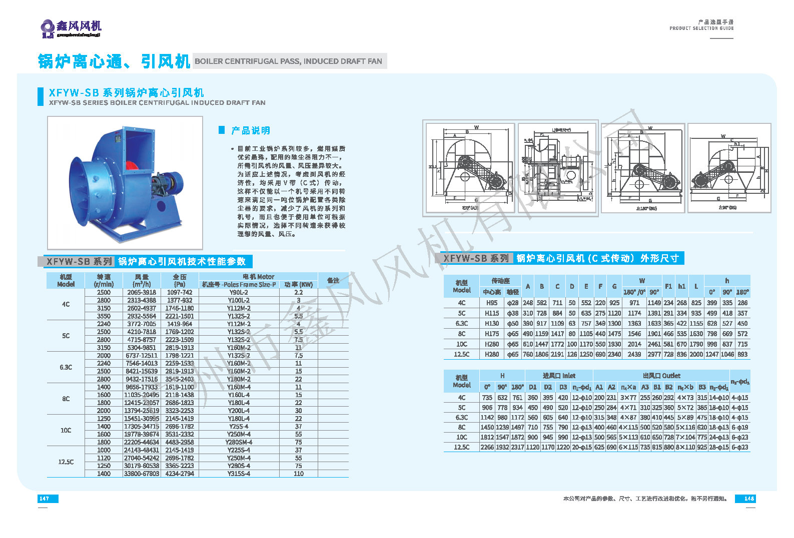 XFYW-SB鍋爐離心引風(fēng)機(jī)系列技術(shù)性能參數(shù):